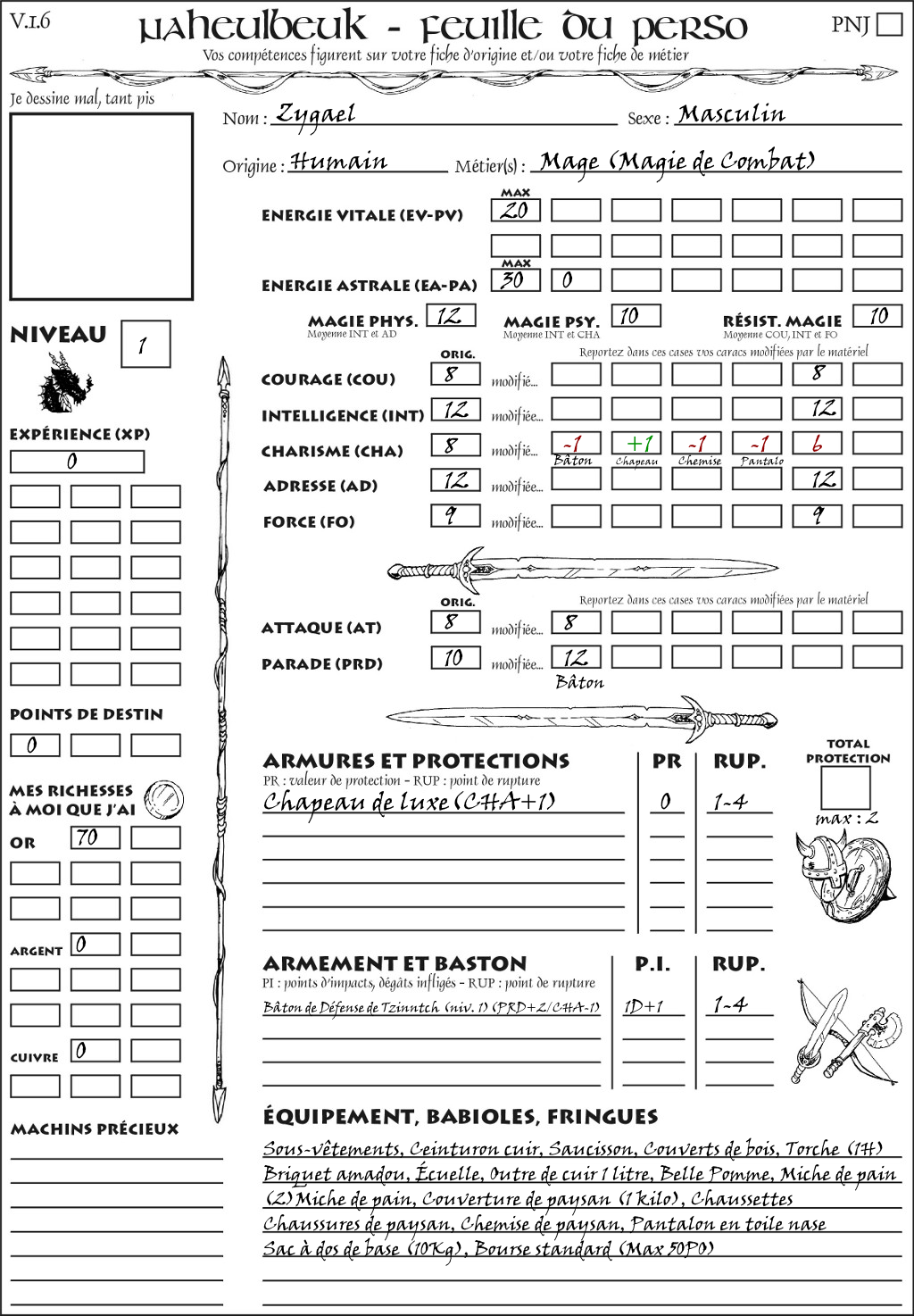 Fiche de personnage