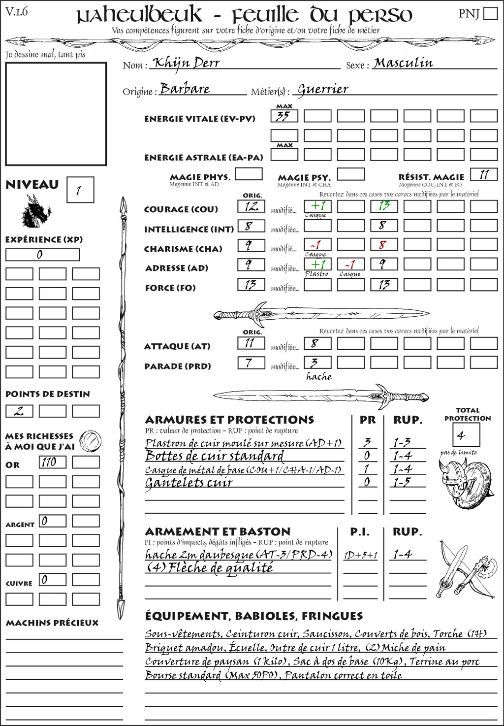 Fiche de personnage