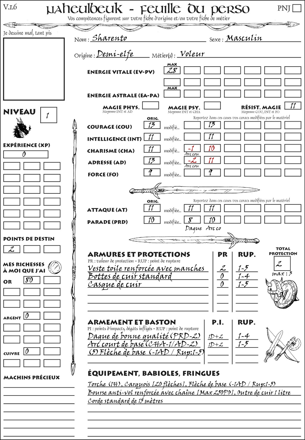 Fiche de personnage