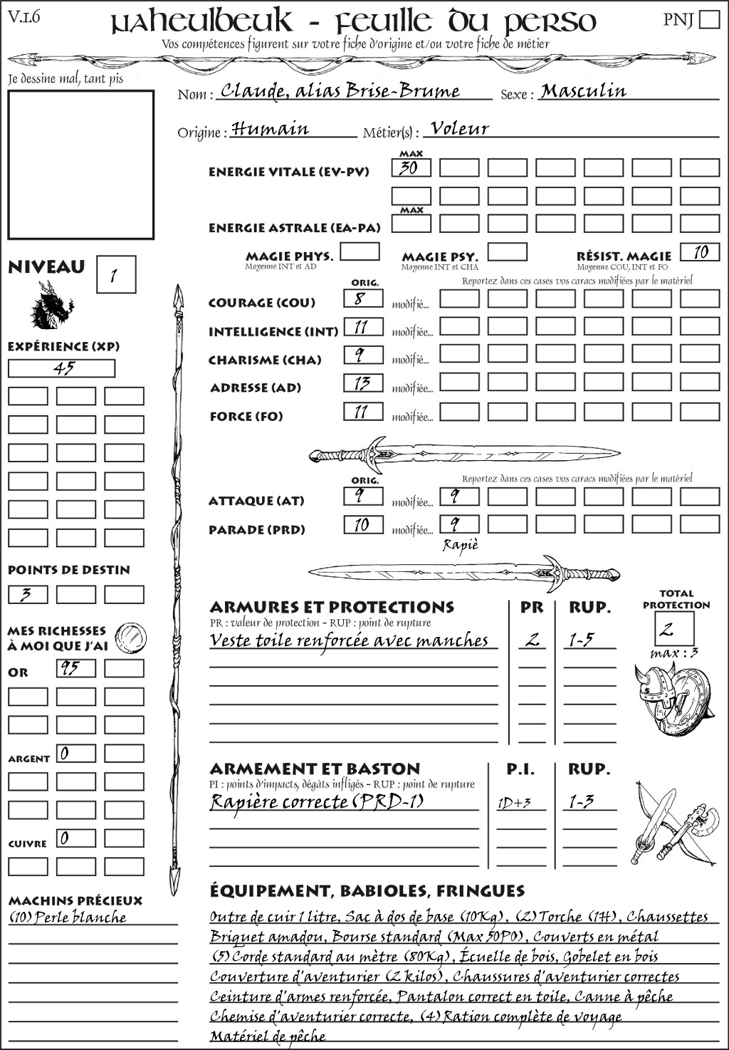 Claude est un humain normal, un aventurier basique comme ceux que vous pourrez trouver dans la plus proche taverne en train de suriner un autre client pour une histoire de tabouret volé.