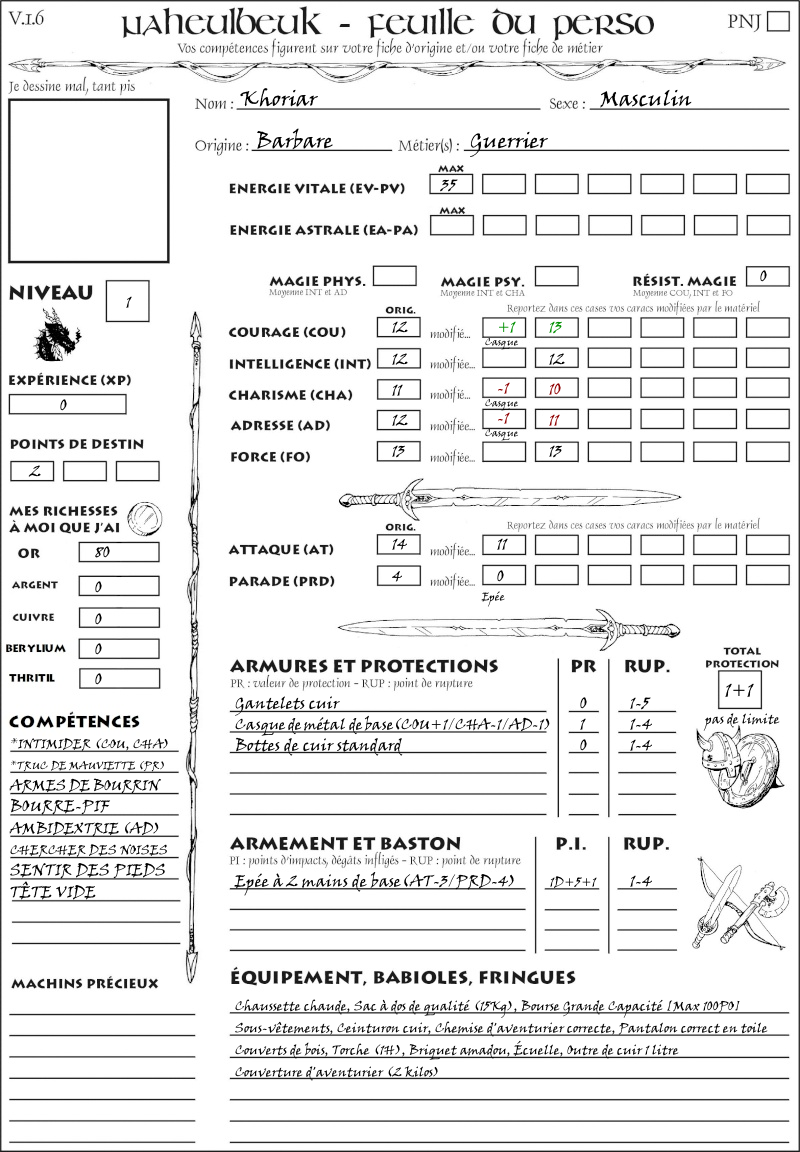 Fiche de personnage
