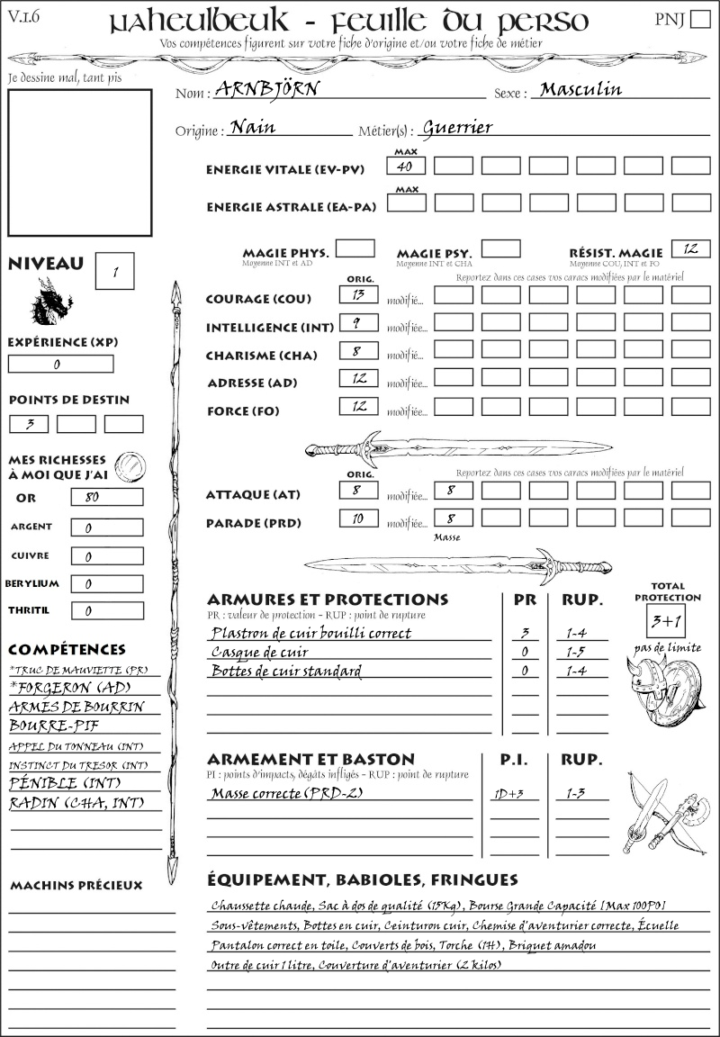 Fiche de personnage
