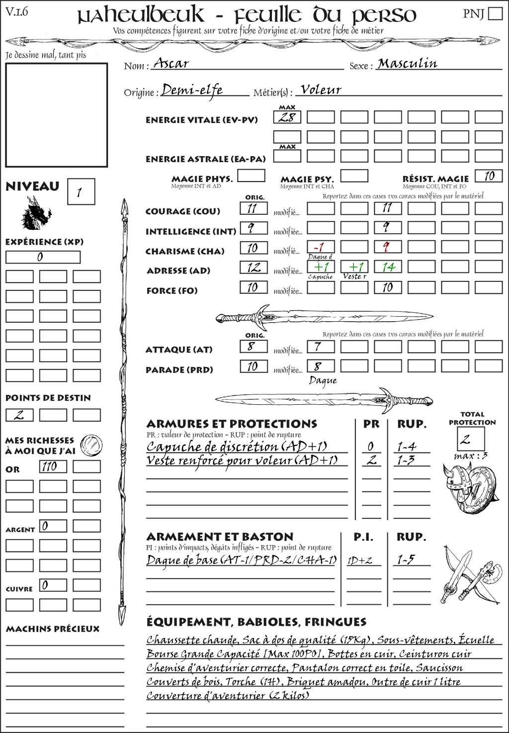 Fiche de personnage