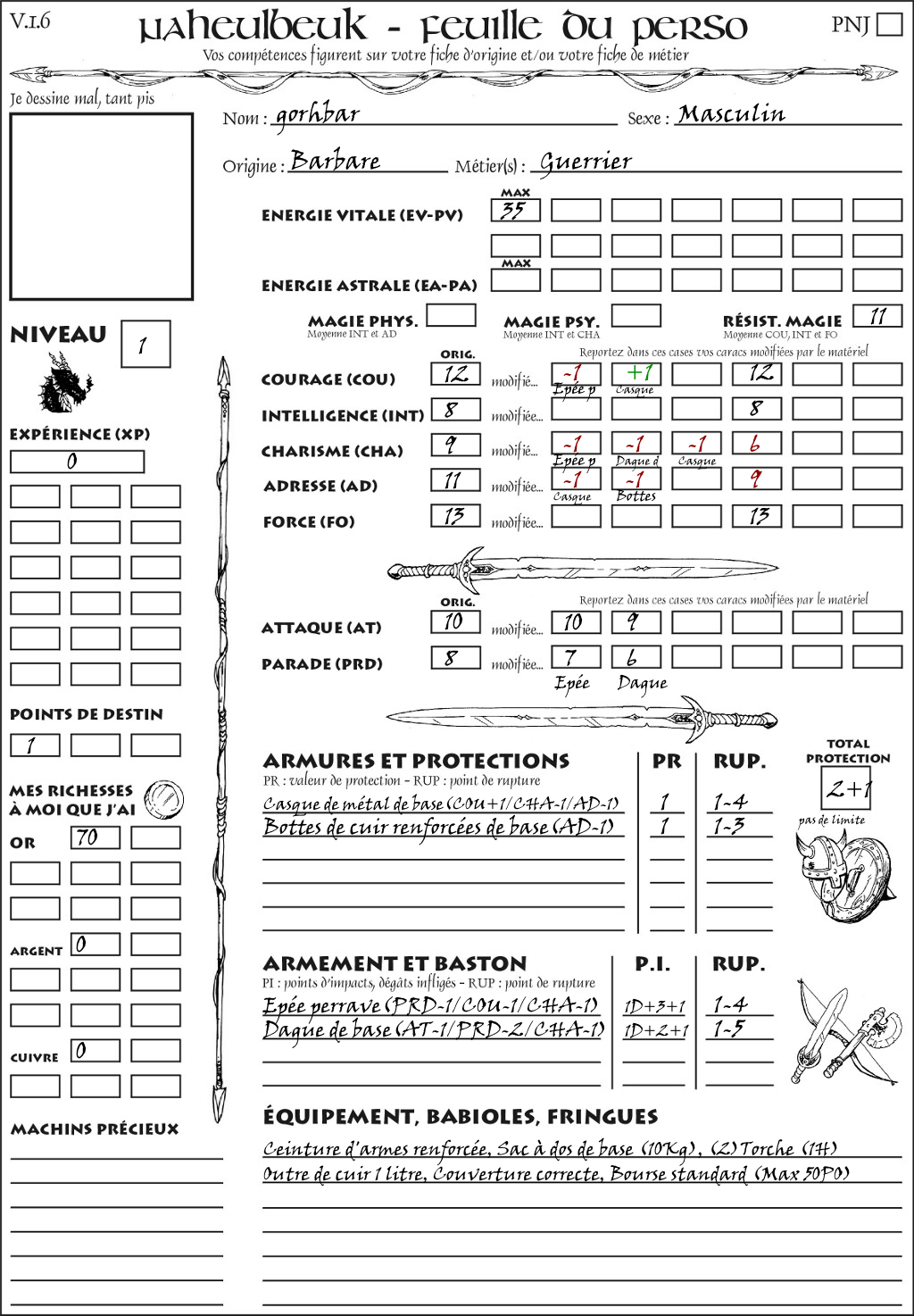 Fiche de personnage