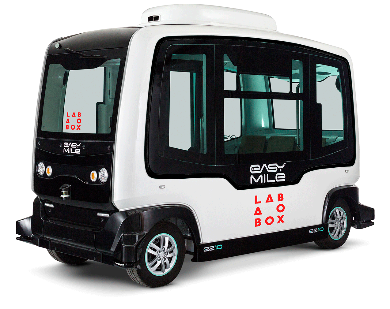 Lab Box works with leading manufacturers like EasyMile, that already have shuttles driving worldwide. These fully electric vehicles are equipped with state-of-the-art sensors and localisation technology, allowing them to safely drive on short, predefined trajectories. A top speed of 20km/h ensures that vehicles have plenty of time to stop safely when an obstacle is detected.